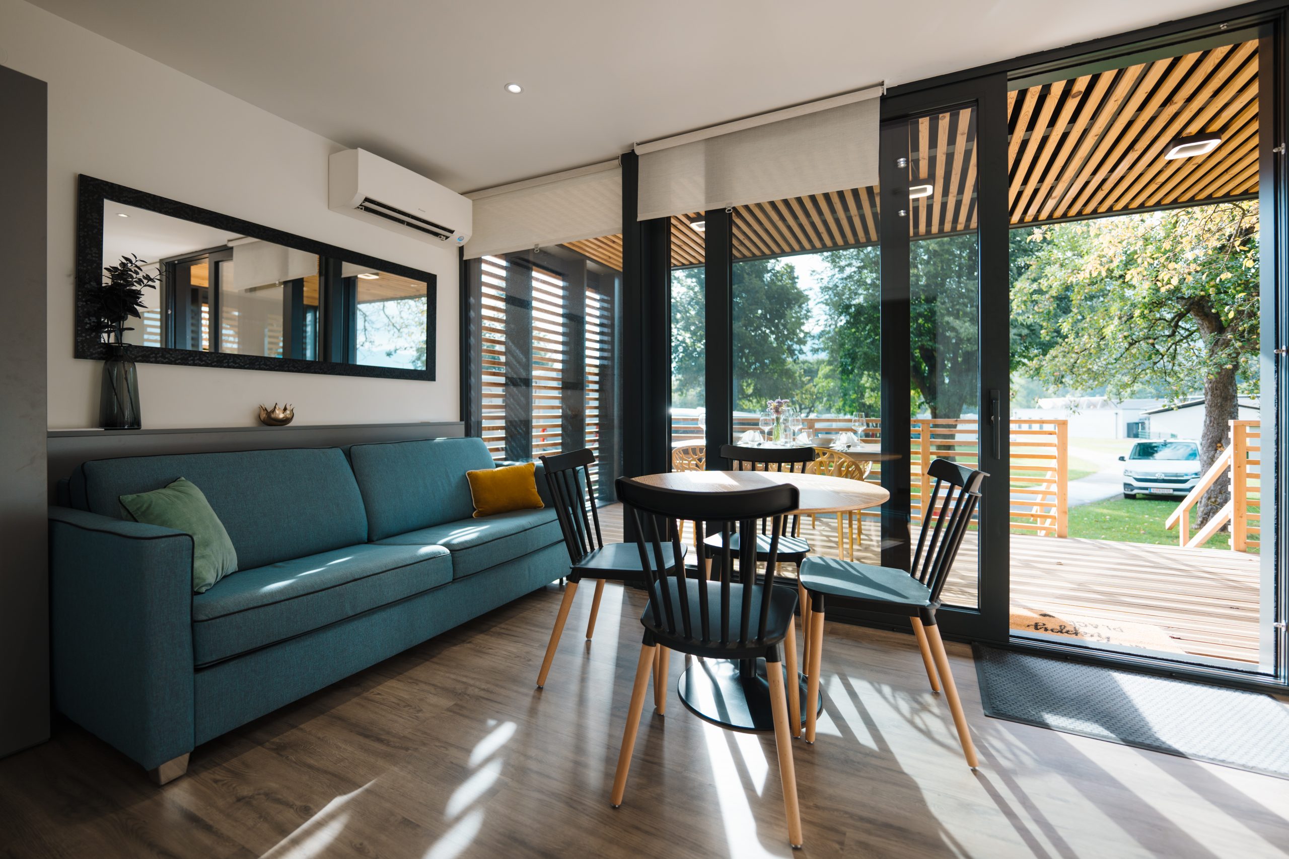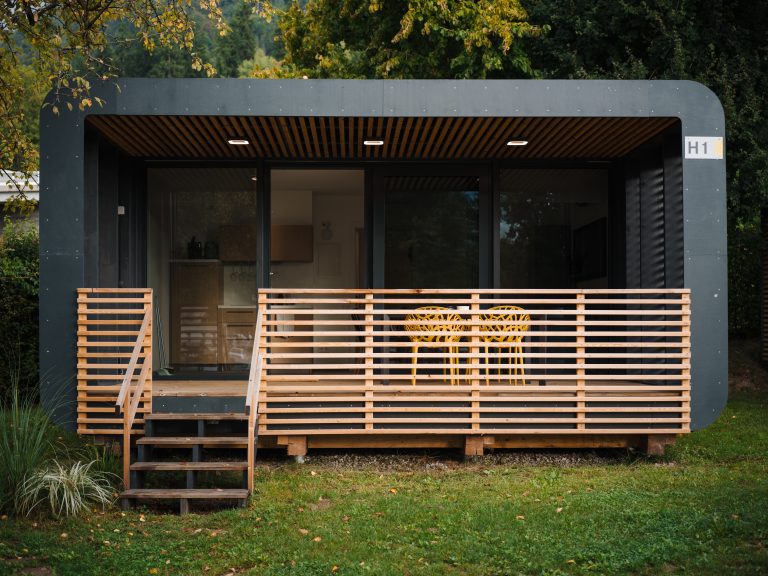 Das Camping House H1/ H4/ H5 bietet eine perfekte Mischung aus Camping und Komfort, ohne dass man auf Annehmlichkeiten verzichten muss – und das zu jeder Jahreszeit! Das Haus befindet sich im ruhigen, hinteren Teil des Campingplatzes, wodurch es eine Oase der Entspannung und Privatsphäre bietet. Mit einer großzügigen Wohnfläche von 57,60 m² bietet es reichlich Platz und ein durchdachtes Raumkonzept.